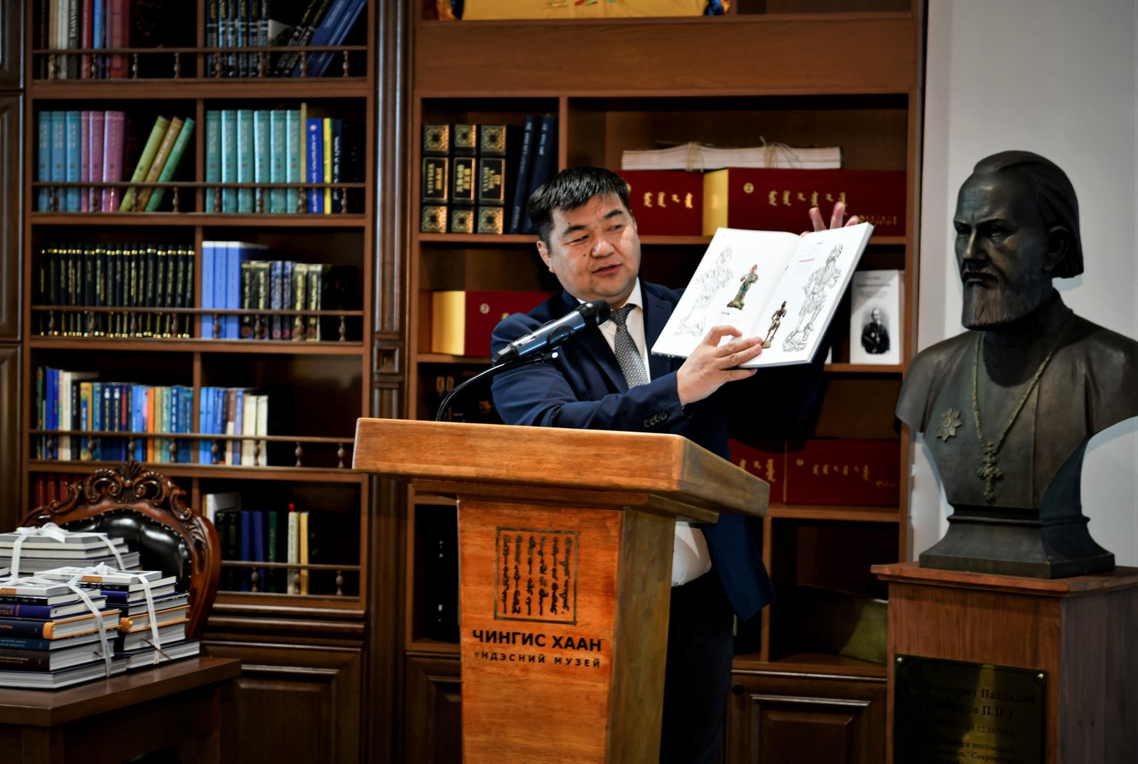 Номын нээлтийг Чингис хаан Үндэсний музейн захирал, Академич С.Чулуун нээж,“Музейн эрдэм шинжилгээний номын санд тавигдасн үе үеийн бүтээлүүд нь эрдэмтдийн уйгагүй хөдөлмөр та бүхний дэмжлэгээр эрдэм судлалын бүтээлүүд гарч байгаа. Манай номын сангийн сан хөмрөг 10 гаруй мянган номоор баяжигдсэн. Энэ олон бүтээлүүд бол Чингис хаан Үндэсний музейн үзмэр, Чингисийн түүх судлал, Монголын эзэнт гүрний түүх судлалд тулгуурлан бүтээгдсэн. Дэлхийн музейдийн эрэмбийг юуг үзүүлж байгаагаар биш, ямар судалгаа, шинжилгээний түвшинд буйгаар хэмждэг. Ирээдүйд дэлхийн монголын түүх судлалын томоохон төв болгохын төлөө бид зорин ажиллаж байна” гэв.