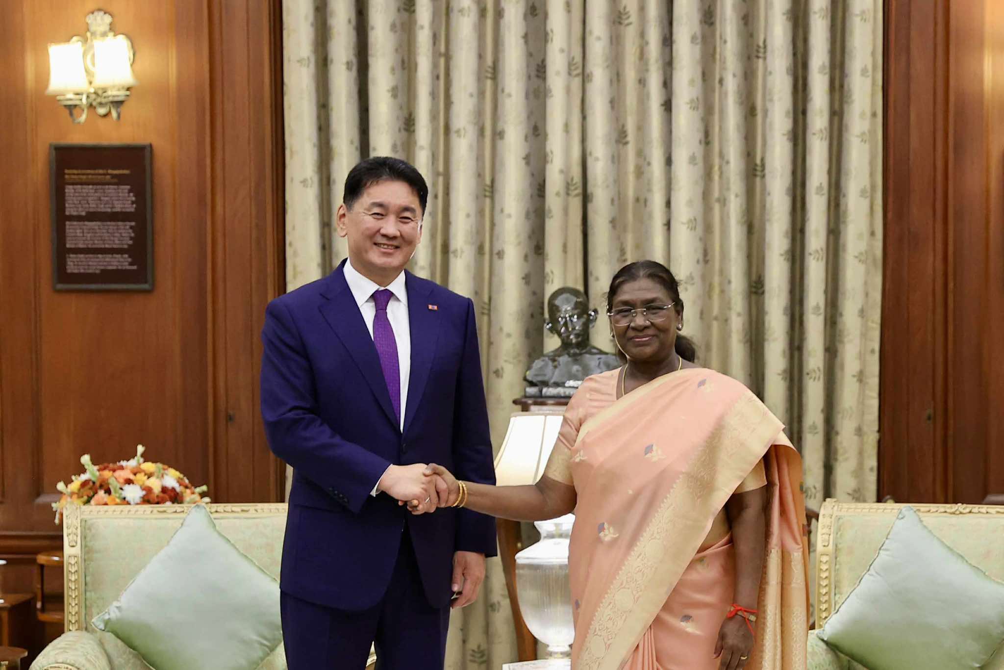 Бүгд Найрамдах Энэтхэг Улсад төрийн айлчлал хийж буй Монгол Улсын Ерөнхийлөгч Ухнаагийн Хүрэлсүх тус улсын Ерөнхийлөгч Дроупади Мурму-тай Ерөнхийлөгчийн ордонд уулзлаа.