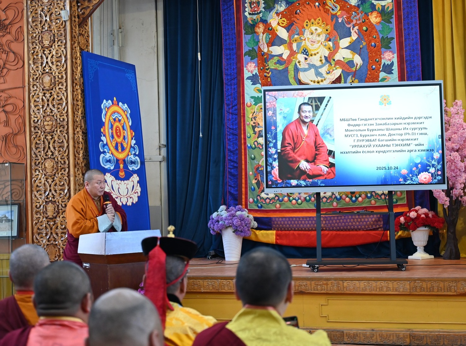 Энэхүү нэрэмжит тэнхимийн албан ёсны нээлтийн ёслолын үйл ажиллагаанд МБШТ–Гандантэгчэнлин хийдийн хансүр, хамба номун хан, гавж Д.Чойжамц, дэд хамба,гавж С.Гантөмөр, Да лам Х.Бямбажав, МБШИС-ийн ректор М.Ганхуяг тэргүүтэй лам хуврагууд оролцон тууз хайчилж үг хэллээ.