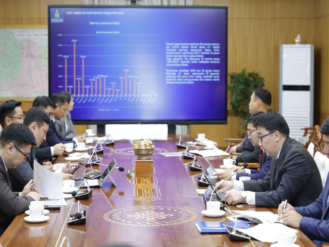 Өнгөрөгч даваа гарагийн байдлаар улсын хэмжээнд үр тариа, төмс, хүнсний ногооны ургац хураалтын ажил үндсэндээ дуусч, үтрэм дээрх ангилан ялгах, цэвэрлэх ажил үргэлжилж байгаа гэдгийг цохон тэмдэглэв. Нийт 220.6 мянган га талбайгаас 242.6 мянган тонн үр тариа хураан аваад байна. Үүнээс 210.5 мянган га-гаас 240.0 мянган тонн улаан буудай, 9.9 мянган га-гаас 101.5 мянган тонн төмс, 15.1 мянган га-гаас 196.6 мянган тонн хүнсний ногоо, 54.3 мянган га-гаас 86.9 мянган тонн малын тэжээл, 47.4 мянган га-гаас 22.3 мянган тонн тосны ургамал тус тус хураан авчээ. Ургац хураалтын эцсийн дүнг 11 дүгээр сарын 5-ны өдөр гарах талаар мэдээлэл өгөв.