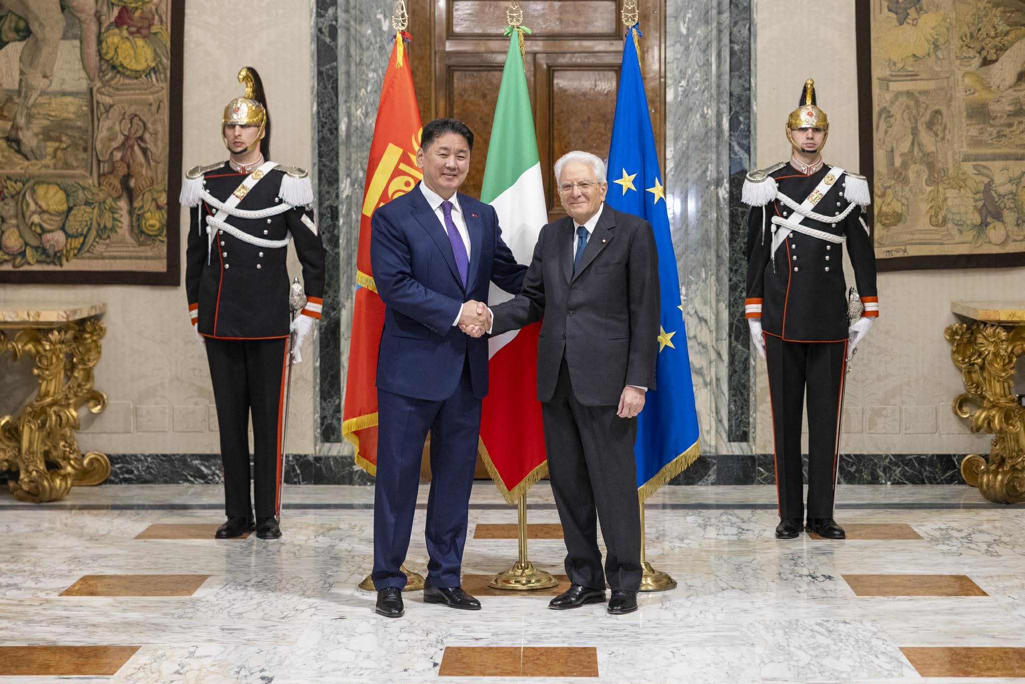 Монгол Улсын Ерөнхийлөгч Ухнаагийн Хүрэлсүх Бүгд Найрамдах Итали Улсын Ерөнхийлөгч Сэржо Маттарэллагийн урилгаар тус улсад төрийн айлчлал хийж байна.