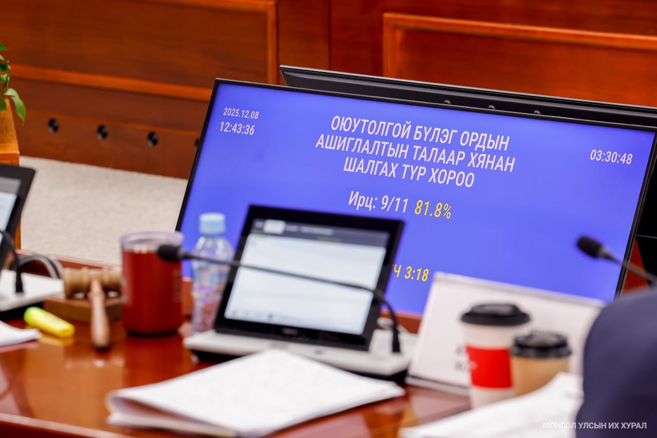 Улсын Их Хурлын 2025 оны 62 дугаар тогтоолоор байгуулагдсан Оюутолгойн бүлэг ордын ашиглалтад Монгол Улсын эрх ашгийг хангуулах, хүртэх өгөөжийг нэмэгдүүлэхтэй холбоотой баримт бичиг, үйл ажиллагаанд хяналт шалгалт хийх Улсын Их Хурлын хянан шалгах түр хорооны нотлох баримтыг шинжлэн судлах сонсгол өнөөдөр (2025.12.10) хоёр дахь өдрөө үргэлжилж байна.