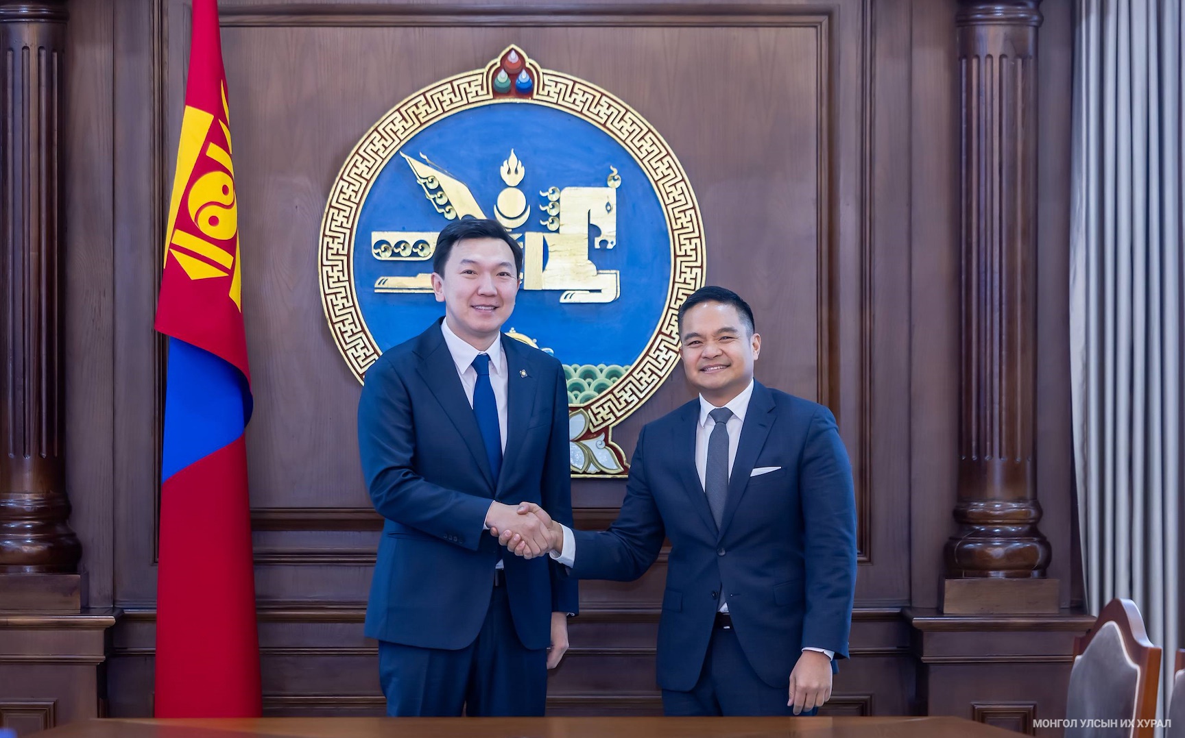 Улсын Их Хурлын дарга Н.Учрал өнөөдөр /2025.12.10/ Америкийн Нэгдсэн Улсаас Монгол Улсад суугаа Онц бөгөөд Бүрэн эрхт Элчин сайд Ричард Буанган-ыг хүлээн авч уулзлаа.