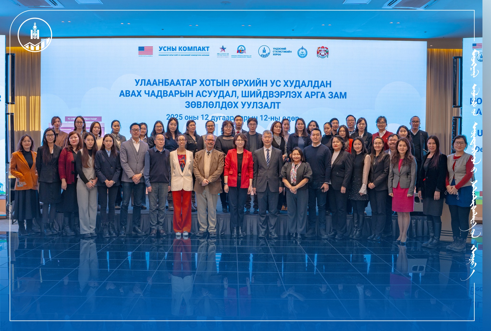 Дашрамд мэдээлэхэд, Монгол Улсын Засгийн газар, АНУ-ын Мянганы Сорилтын Корпорац хамтран “Усны Компактын төсөл хөтөлбөр”-үүд хэрэгжүүлж буй билээ. Тус хөтөлбөрийн Усны салбарын тогтвортой байдлыг хангах төслийн хүрээнд Үндэсний Статистикийн Хороо Монголын Мянганы Сорилтын Сантай хамтран Улаанбаатар хотын ус хэрэглэгчдийн төлбөр төлөх эрмэлзлийн судалгааг 2021 онд, Ус худалдан авах чадварын судалгааг 2024 онд зохион байгуулсан юм.