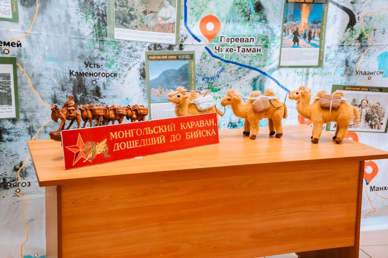 Монголын “Үнэнч мөнх андууд” холбооноос зохион байгуулсан “Тэмээн жингийн цуваа. Бүхнийг фронтод” төслийн хүрээнд Горно-Алтайн (Уулын Алтайн) Улсын Их Сургуульд Аугаа их Эх орны дайны хүнд жилүүдэд Зөвлөлт, Монголын найрамдал, хамтын ажиллагааны нэгэн баатарлаг түүхэн үйл явдалд зориулсан үзэсгэлэнг нээв. Германы фашизмаас Эх орноо хамгаалж байсан Зөвлөлтийн цэргүүдэд тусламж үзүүлэх сайн дурын хөдөлгөөн Монгол Улсад дайны эхний өдрөөс өрнөсөн юм. Монгол Улсын Ховд аймгийн иргэд фронтод илгээх бэлгээ Зөвлөлт Холбоот Улсад хүргэхийн тулд 1200 тэмээ бүхий жингийн цуваа бүрдүүлж, тэмээ бүрт 200 кг ачаа ачиж бэлдсэн байна. Нийт 240 тонн хүмүүнлэгийн тусламж ачсан энэхүү жингийн цувааг 107 монгол хүн дагалдаж 1942 оны есдүгээр сард аяны замд гарчээ.