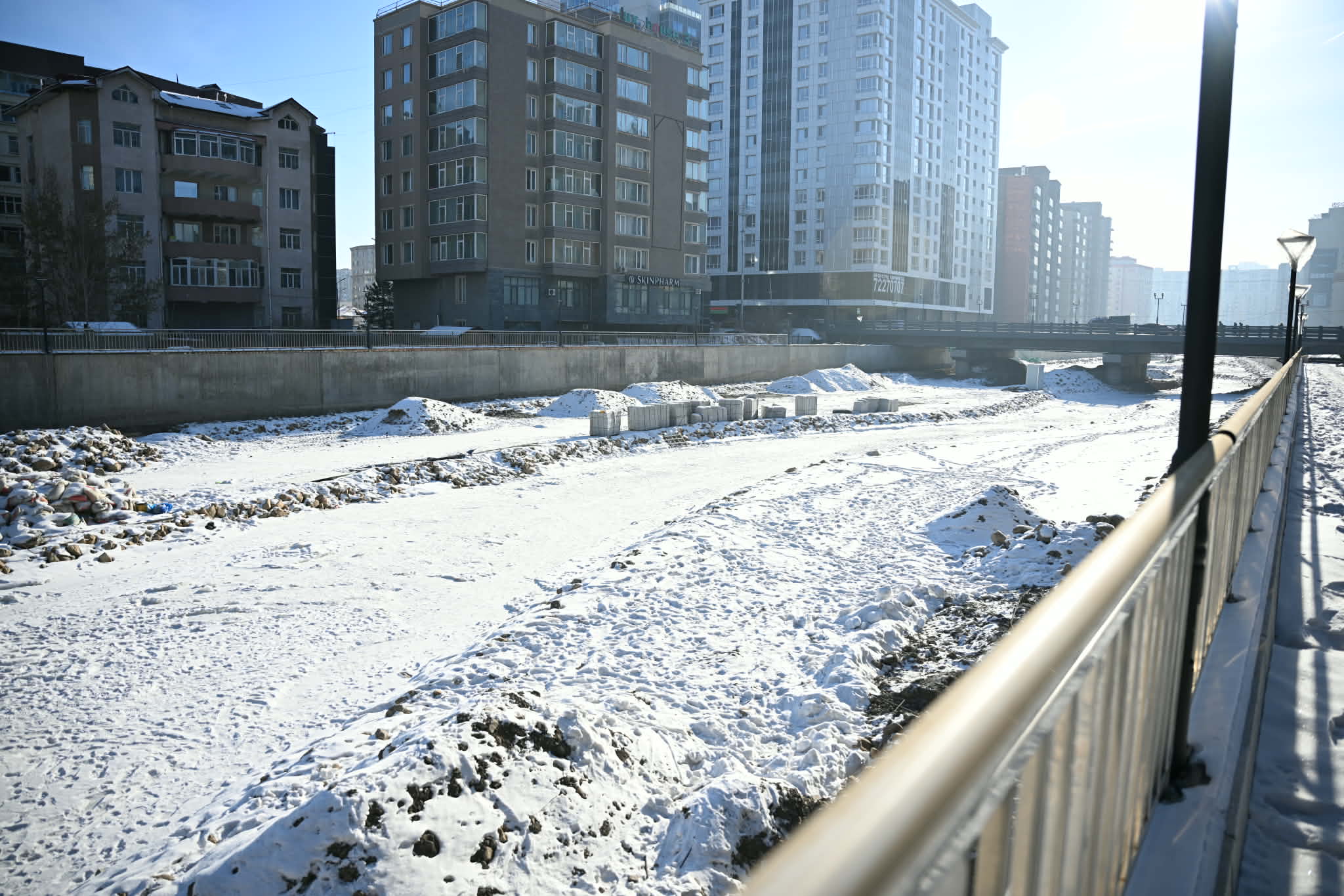 НЗД-ын нэгдүгээр орлогч Т.Даваадалай “Зэвэрдэггүй ган, 4 мм-ийн зузаантай, 1.2 метр өндөртэй төмрөөр явган замын хашлага хийж байна. Мөн голын хажуугаар гэрэлтүүлэг хийсэн. Малгайвчууд хийсэн. Хашлага, малгайвчийн үлдсэн ажлууд бусад ажилтай уялдан хийгдэж байна” гэлээ.