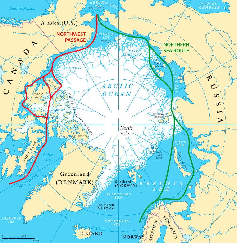 Арктик дахь тээврийн хамгийн том хоёр коридор нь Оросын эрэг дагуух Хойд тэнгисийн зам ба Хойд Америкийн умард эрэг дагуух Баруун умард гарц юм.