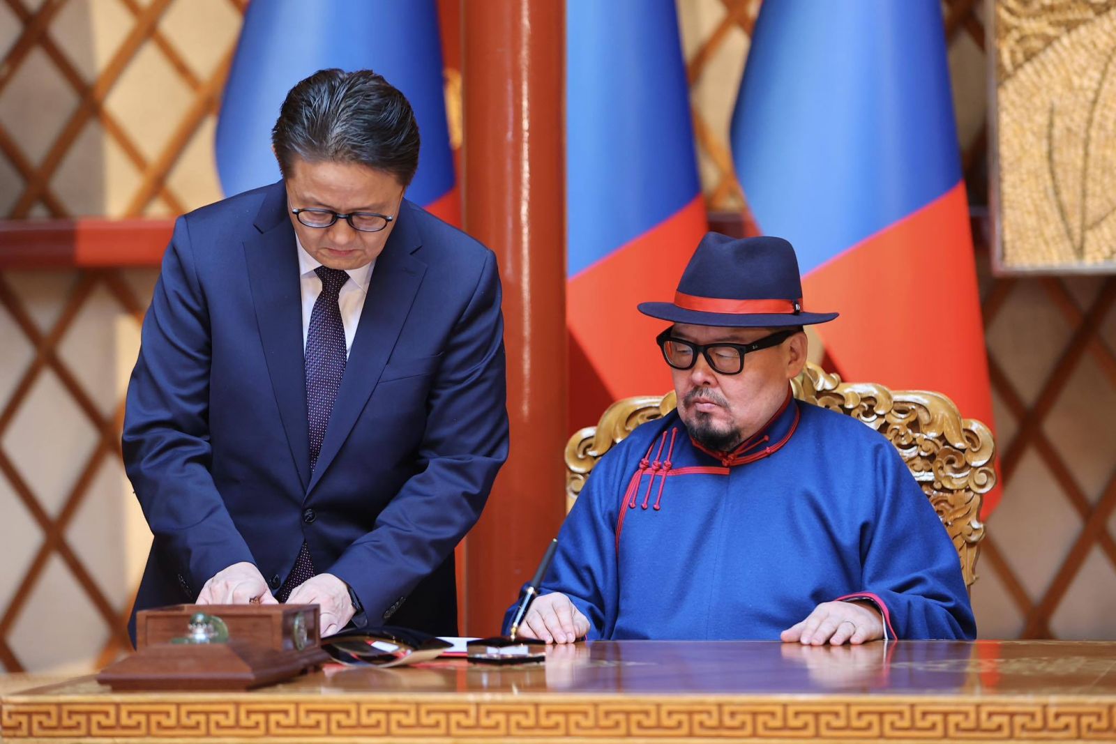 Зарлигийг уншиж сонордуулсны дараа Монгол Улсын Ерөнхийлөгч Ухнаагийн Хүрэлсүх, Монгол Улсын Ерөнхий сайд Гомбожавын Занданшатар нар зарлигт гарын үсэг зурлаа.
