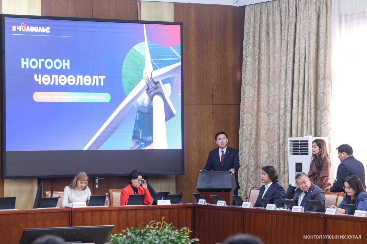 Эдүгээ манай улсын нийт эрчим хүчний 77 хувийг дулааны цахилгаан станцууд үйлдвэрлэж, 22.3 хувийг итпортоор авч, 7.0 хувийг сэргээгдэх эрчим хүчээр хангаж байна. Энэ бол хангалтгүй тоо гэж Улсын Их Хурлын дарга анхааруулаад, шугамын алдагдлын дэлхийн дундаж 6.0 хувь байхад манай улсынх 14.0 хувь байгаа нь анхаарах шаардлагатай хэмжээ гэв. Мөн жилд 2.2 тэрбум ам.долларын шатахуун импортолдог, цахилгаан тээврийн хэрэгслийн тоо хангалтгүй, агаарын бохирдол их байгаа нь бидний бэлэн байдал хангагдаагүйг илтгэн харуулж байна гэлээ. Иймд Улсын Их Хурлаас “Засгийн газарт чиглэл өгөх тухай” 2025 оны 119 тоот тогтоолыг баталсан гээд уг тогтоолын хэрэгжилтийг хэрхэн хангах талаар дэлгэрэнгүй танилцууллаа.
