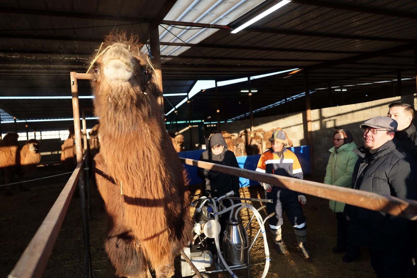 Уг фермийг “Солид партнерс групп” компани таван жилийн өмнө нээжээ. Нийт 225 тэмээтэй. Үүний 160 нь ингэ. Өнөөдрийн байдлаар 70 ингэ сааж, өдөрт 140-150 литр сүү авч байна. Нэг ингэнээс 2.5 литр сүү буюу бэлчээрийн тэмээнээс хоёр дахин их сүү авч байгаа юм байна. Зуны улиралд 4 хүртэл литр сүү авдаг гэж фермийн удирдлагууд танилцуулав. Ингэ саахдаа зориулалтын саалтуур ашигладаг учраас сүүний гарц нэмэгдэх, цаг хугацаа хэмнэх зэргээр бүтээмжийг өсгөжээ.
