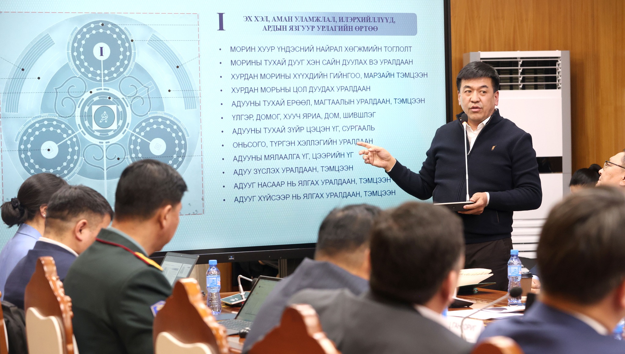 Хуралдаанаар “Дэлхийн адууны өдөр” арга хэмжээтэй холбоотой Монгол Улсын Ерөнхийлөгчийн зарлигийн төслийг боловсруулж танилцуулах тухай, "Нүүдэлчдийн соёлын өв- Мал аж ахуйн ногоон хөгжлийн хөтөлбөр"-ийн концепц, үйл ажиллагааны нарийвчилсан төлөвлөгөө, төсөв, шийдвэрлэх асуудлыг хэлэлцлээ. Мөн “Дэлхийн адууны өдөр” арга хэмжээнд оролцох гадаадын зочид, төлөөлөгчид, хэвлэл мэдээллийн байгууллагуудын жагсаалт, Бүгд Найрамдах Вьетнам Улсын морьт цагдаагийн хороонд үүрэг гүйцэтгэсэн морьдыг эх орондоо авчрах, сэлгэх асуудлын явцыг танилцуулж, малчдын дунд цахим дэд бүтцийн хэрэглээг нэвтрүүлэх ажлын явцын талаар хэлэлцэв.