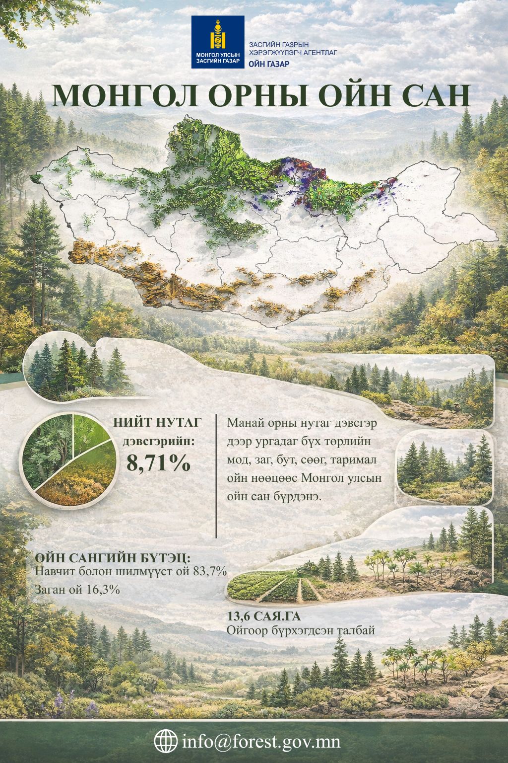 Тус зөвлөлийн 2026 оны 02 дугаар сарын 09-ний өдрийн ээлжит хуралдаанаар Монгол Улсын ойн сангийн шинэчилсэн тоо баримтыг хэлэлцэж, ойгоор бүрхэгдсэн талбайг 8.71 хувь гэж баталлаа.