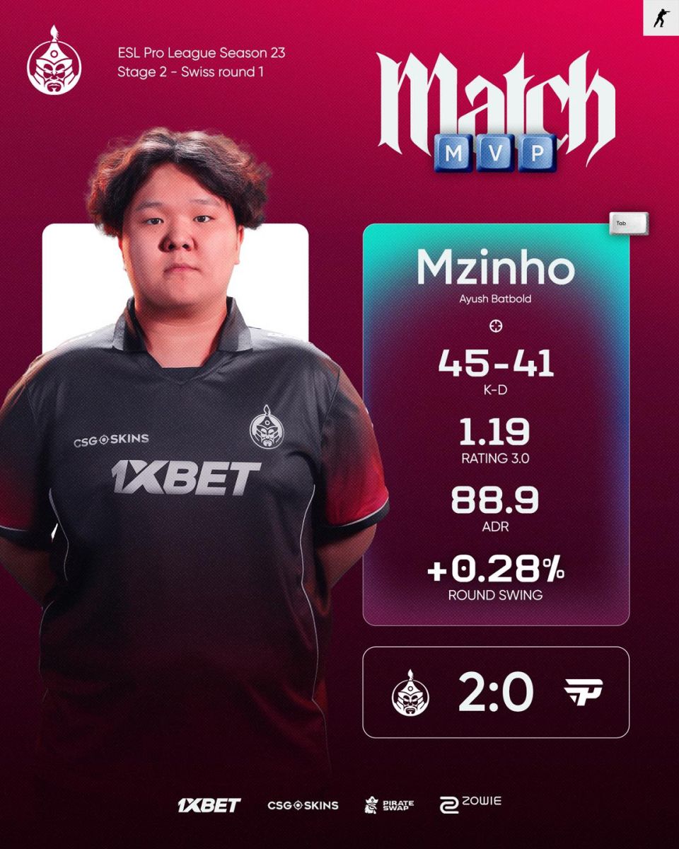 The MongolZ баг ESL Pro League Season 23 тэмцээний эхний тоглолтод Бразилийн paIN Gaming багийг 2:0 харьцаатайгаар хожиж, тэмцээнийг 1–0 гэсэн үзүүлэлттэйгээр үргэлжлүүлэхээр боллоо.